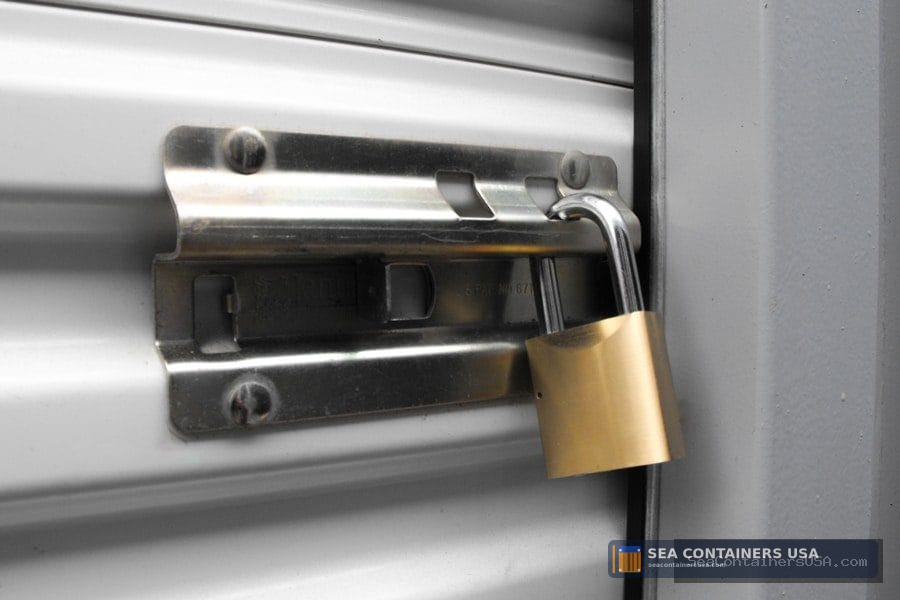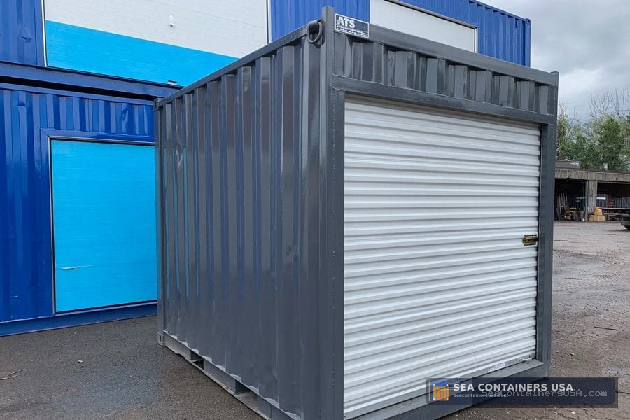 This container is manufactured from a cargo worthy 20 ft standard used container and repainted charcoal grey. The 7’ wide steel rollup door is added for convenient access. For added security, the roll up doors include a locking mechanism that secures the contents stored inside.
